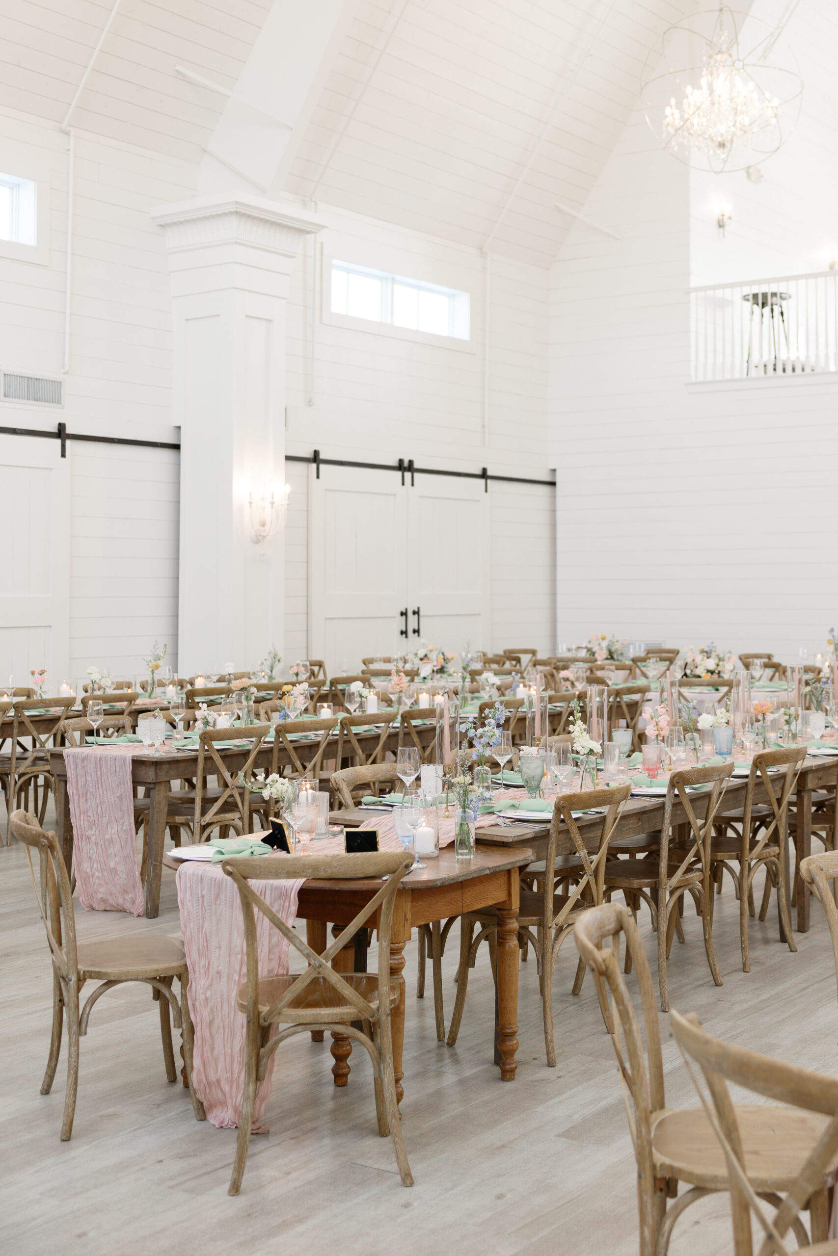 - THE VENUE: Providence Vineyard’s rolling green hills and white barn were the perfect canvas for our pastel arrangements.